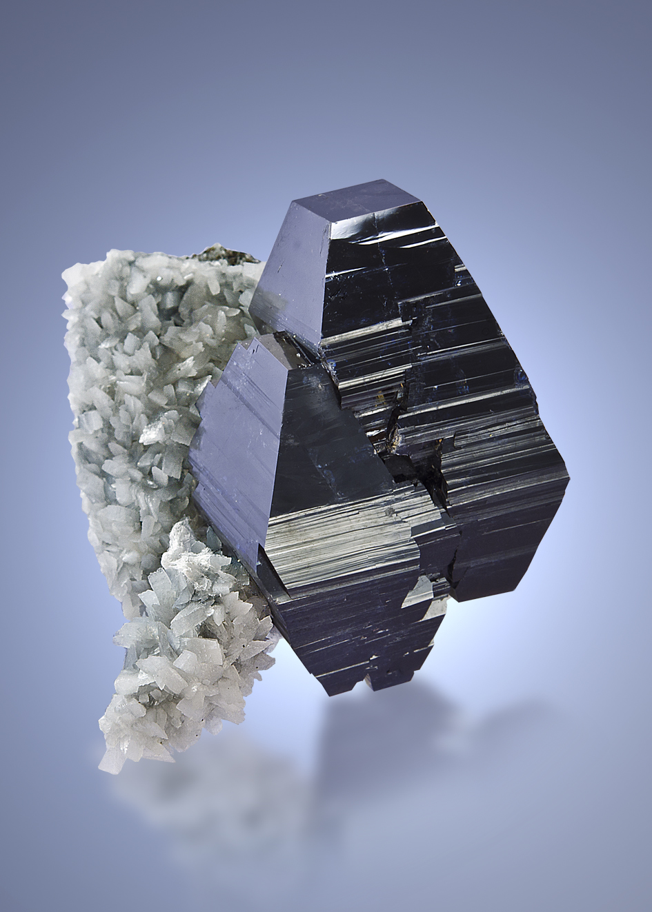 This piece features a super brilliant 1 inch anatase crystal on white adularia matrix! Tiny chipping is present, but it is really very small and not an issue in context. The crystal is actually a composite cluster of 2 individual crystals both of which show flat terminations and great striations on the pyramid faces. Superb aesthetics and quality!