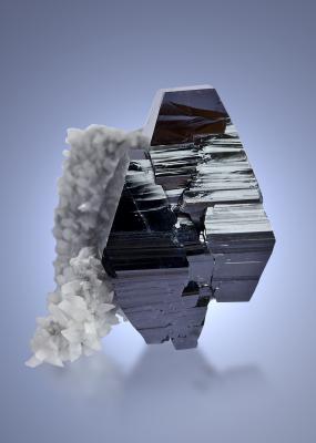 Half a dozen highly lustrous pyrargyrite crystals measuring to 1.6 cm across resting on a matrix of dark galena ore. The top back side of the crystals is nicely covered by bright stilbite crystals! Very nice sample of a rarely seen association!