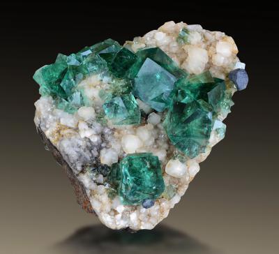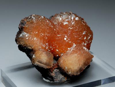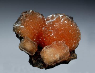 This is one of the very best olmiite miniatures we have ever seen! Two richly coloured olmiite spheres up to 2.7 cm in diameter are associated with two individual crystal aggregates. The whole cluster is on matrix and undamaged all around! Ex Charlie Key collection.