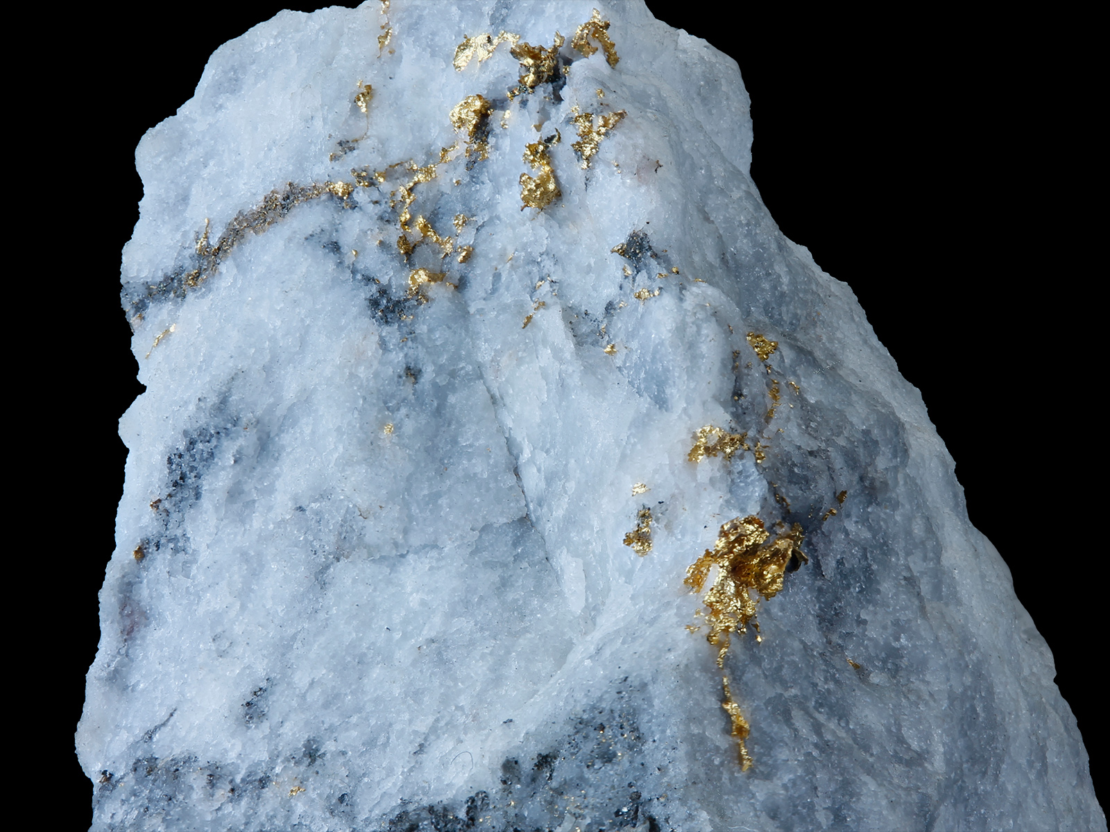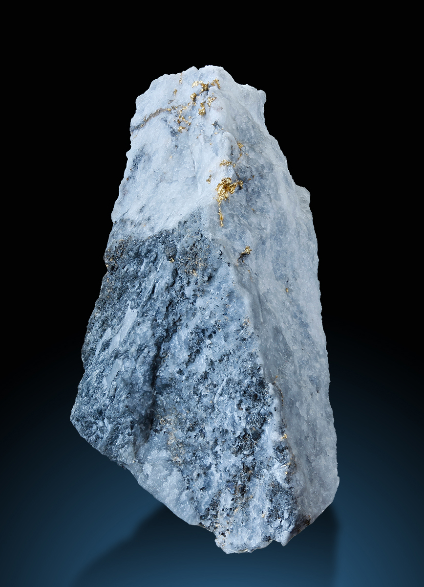 Well visible native gold set on matrix represents an exceptional rarity for Austrian Alps - here is one! Good contrast of intense colored gold on the schist and quartz matrix. Ex Heinrich Prager collection.