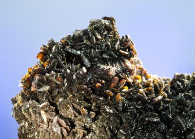 Sharp and pointed descloizite crystals in a large cluster group. Very good condition and shape.