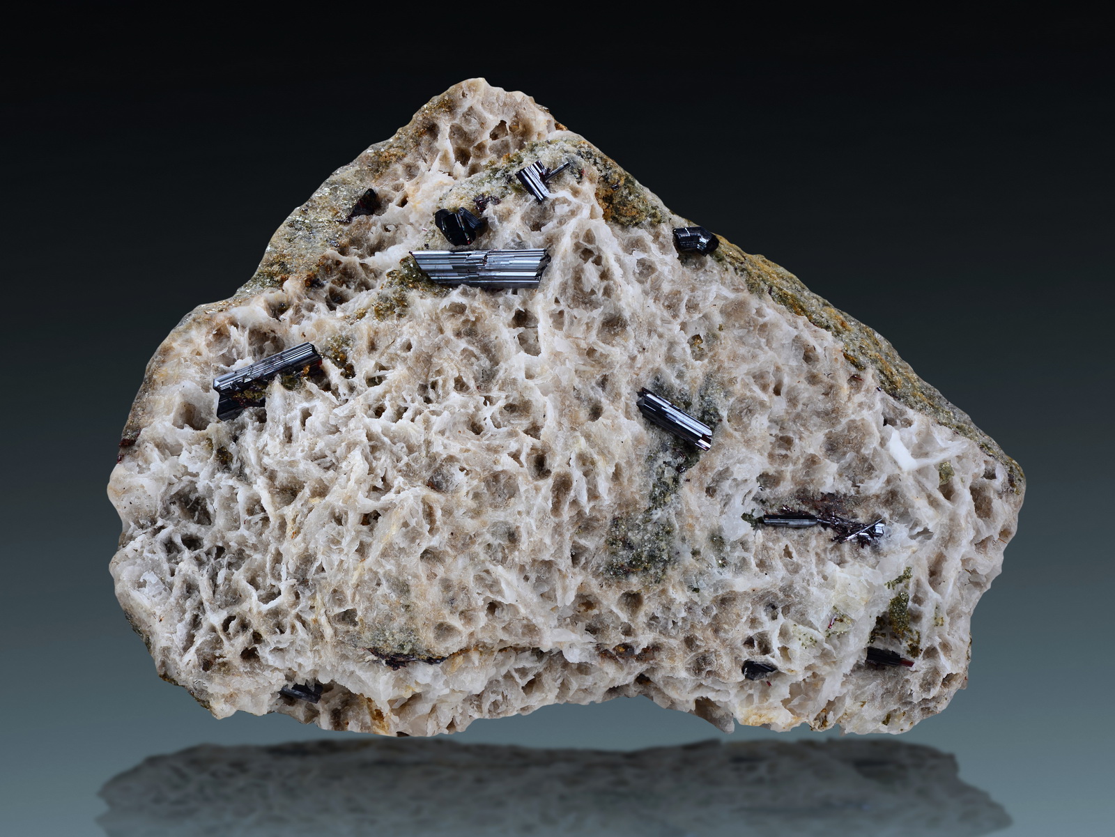 Highly brilliant rutile crystals to 15 mm in length on nicely contrasting calcite matrix! The rutiles feature beautiful striations and are all doubly terminated. No damage.