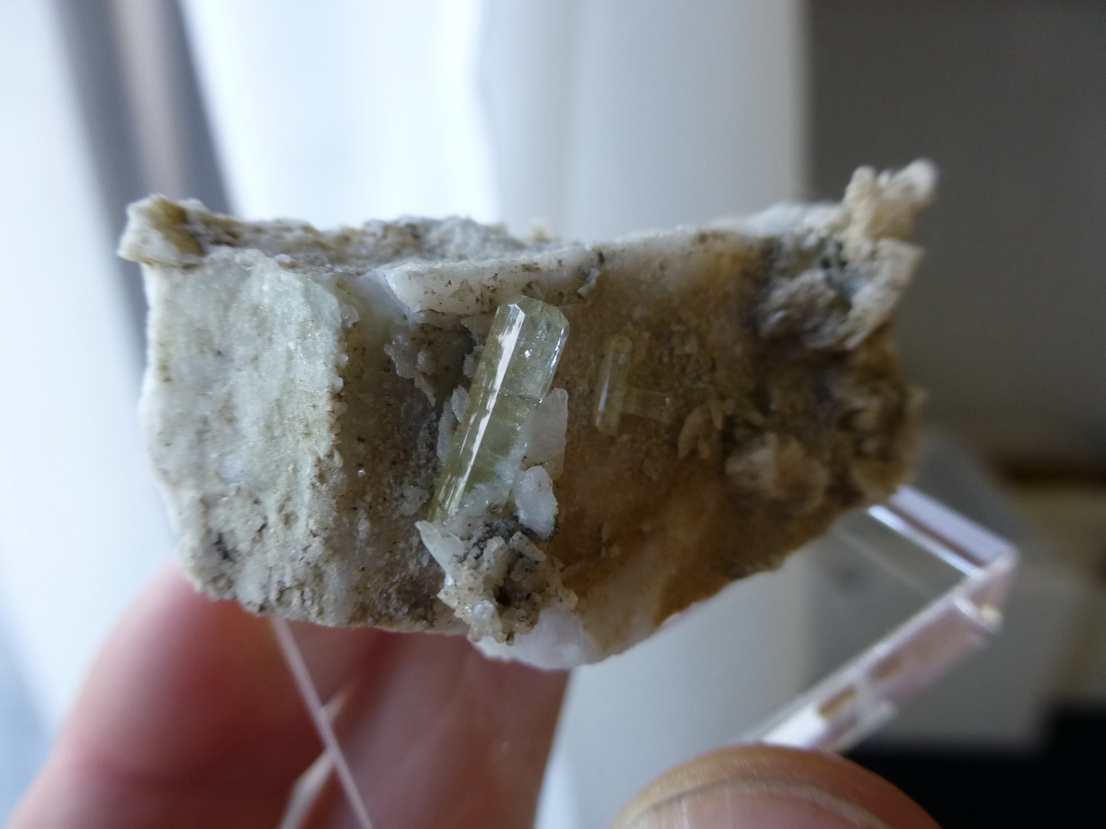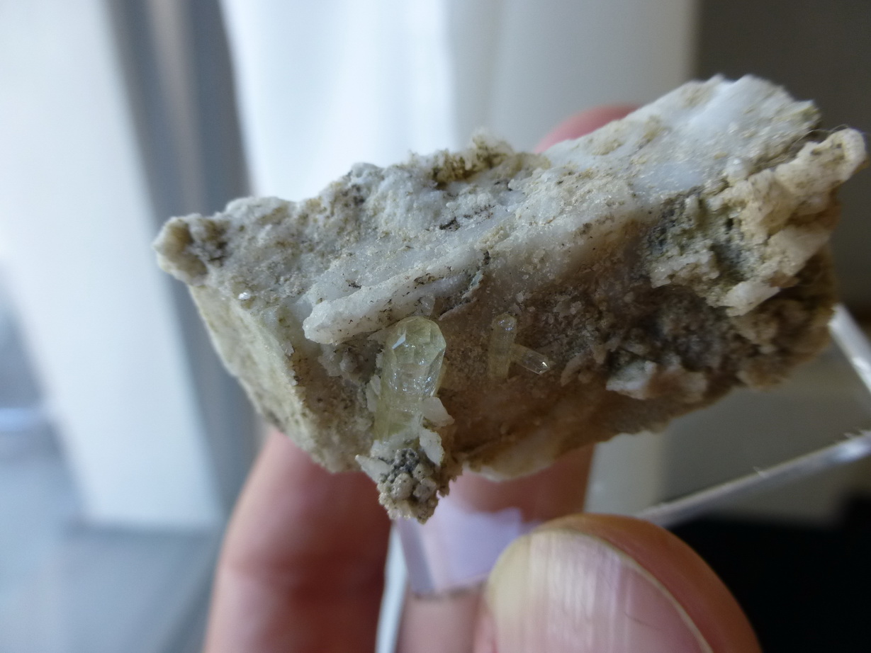 Two apatite crystals in a floater cluster. Repaired once - the repair is truly lock-fit and almost impossible to see.