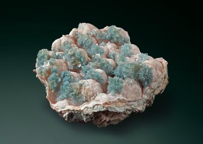 What a superb large cabinet specimen! Sprays of blue barite scattered on a matrix of botryoidal pink dolomite. the piece is very well balanced and in great condition. Stunning quality and gorgeous visual display!