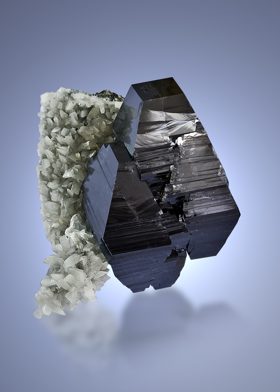 This piece features a super brilliant 1 inch anatase crystal on white adularia matrix! Tiny chipping is present, but it is really very small and not an issue in context. The crystal is actually a composite cluster of 2 individual crystals both of which show flat terminations and great striations on the pyramid faces. Superb aesthetics and quality!