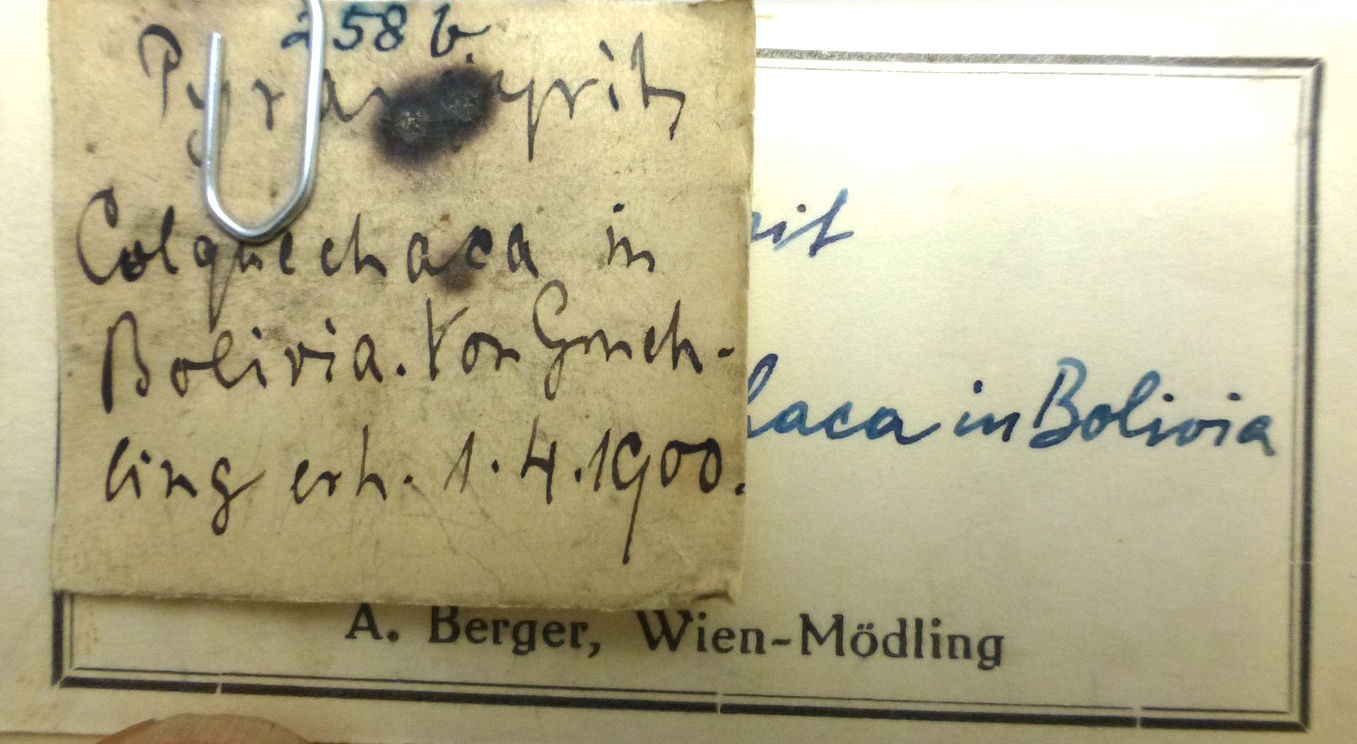 Excellent Tn sized floater cluster from Bolivia! Note the old label, it says the specimen was acquired on April 1, 1900! No damage.