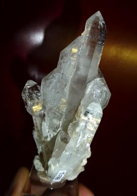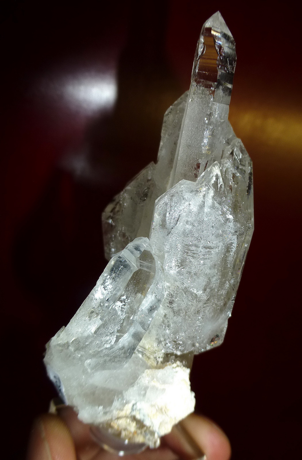 Pristine floater cluster of 4 doubly-terminated clear smoky quartz crystals. Very rare and special!
