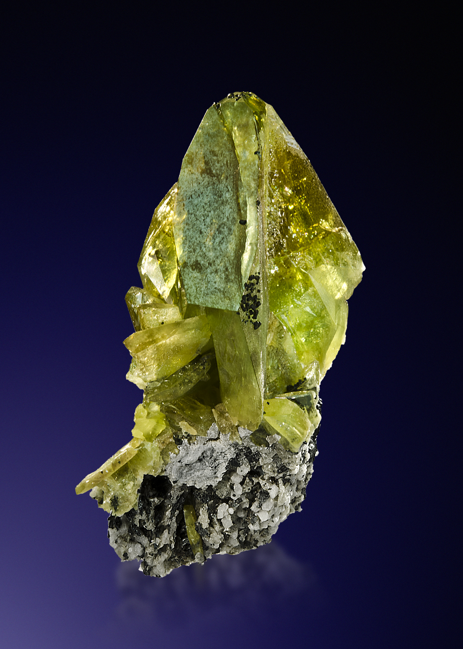 Large crystal of twinned titianite on matrix. Great colour for every alpine collection!