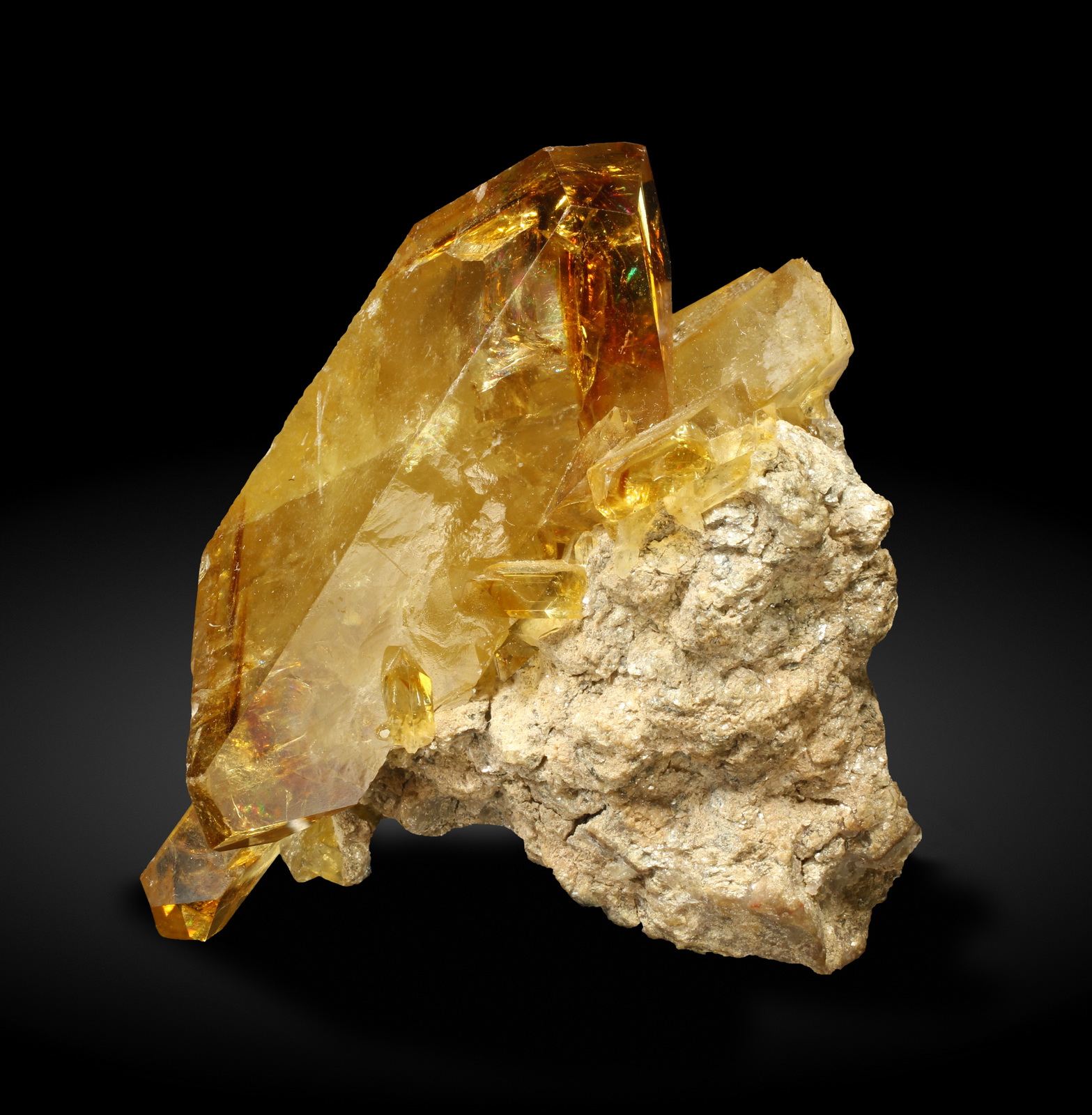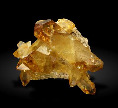 Deeply coloured, doubly terminated barite crystals on matrix! The specimen is very 3-dimensional and showy all around. Great condition and visual impact!