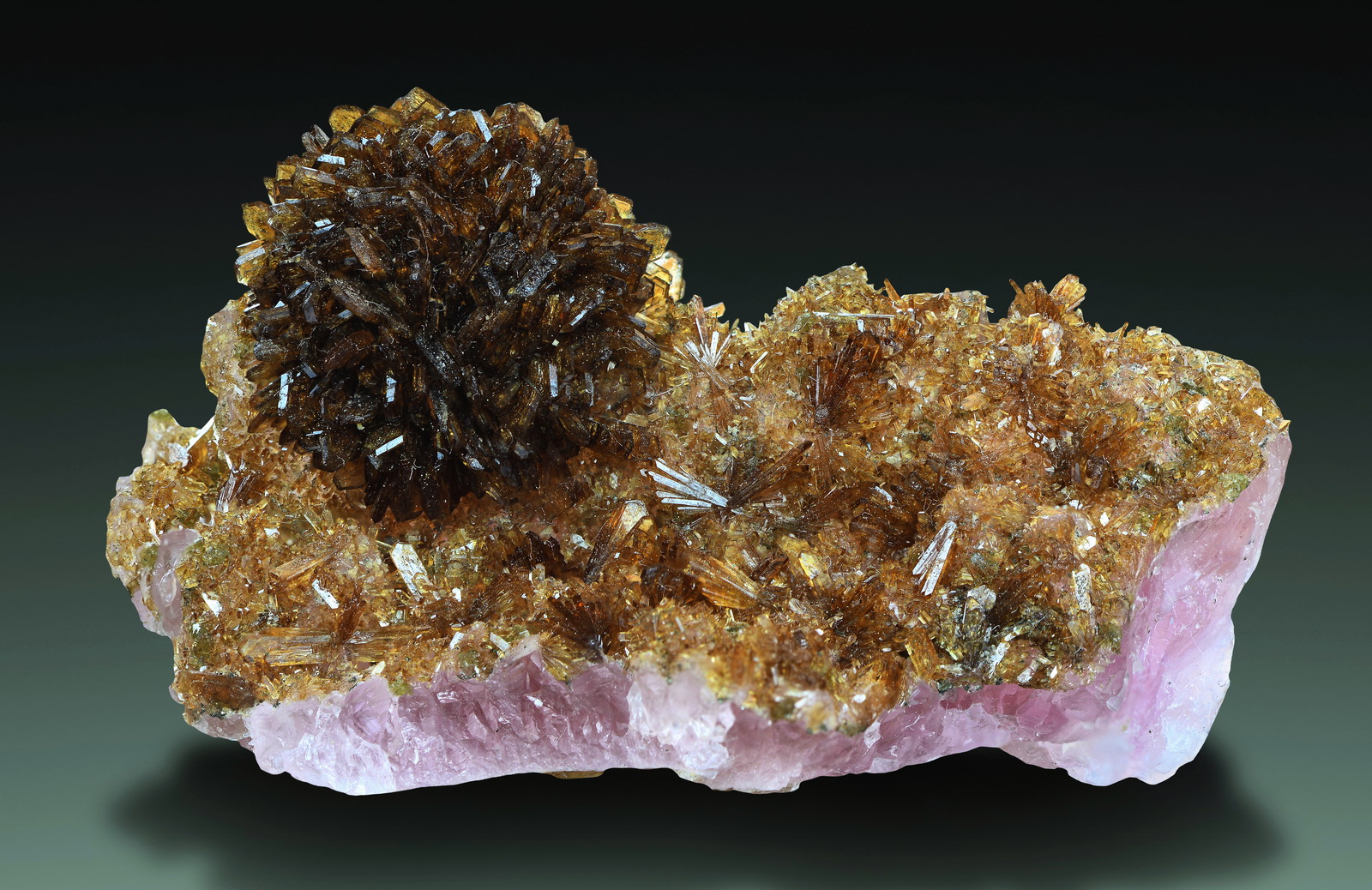 Wow! A 23 mm ball of eosphorite crystals is perched on rose quartz crystals! The shape of this specimen is indeed amazing, and the condition is very good!