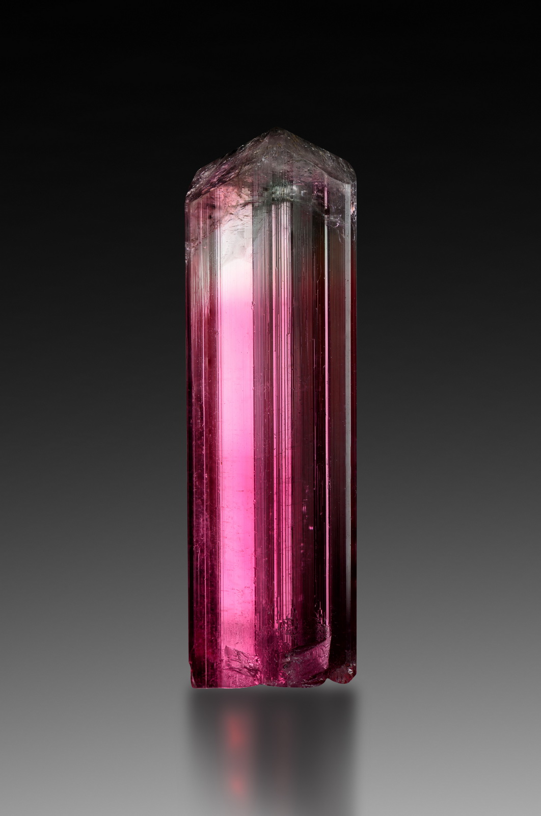 Superb quality indeed! Gem rubellite from a new find at Chia mine. This new find can easily compete with the famous old finds at Jonas and Cruzeito mines. The colour is strong and intense, combined with perfect "cutting rough" clarity. The termination has an interesting blue/greenish hue. No damage.