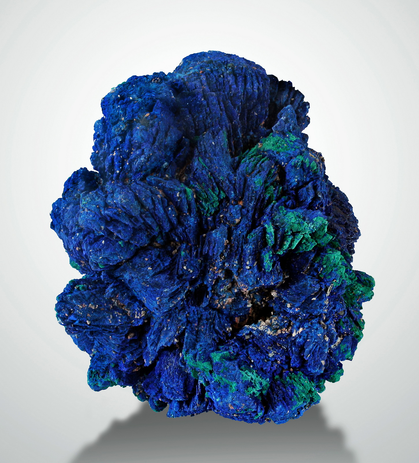 This is an amazing cabinet sized azurite floater specimen from a classic French locality. The crystals are sharp and well formed all the way around. A part of the crystals is altered to malachite, which sets a nice colour contrast. Ex Lawrence H. Conklin collection, his label is coming with the piece.