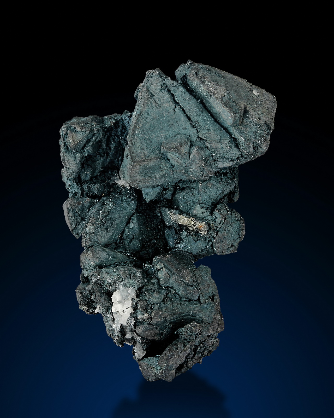 Lovely floater cluster of tennantite crystals. Small quartz crystals are attached on the back side. Classic Tsumeb!