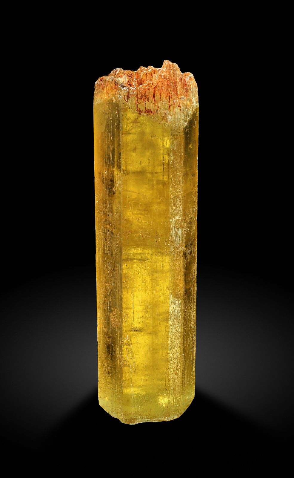 Superb heliodor from a small limited find in 2015. The colour is exceptional, it is indeed a very vivid yellow in person. The jagged red cap is the distinctive feature of this pocket and gives these pieces unique and special touch.