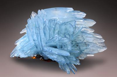 Supperb flower spray of blue barite from the recent finds in Nador, sitting on a small piece of gossan matrix. This specimen features the best luster and colour found, and it is in excellent condition all around. It is very 3-domensional and showy on all sides!