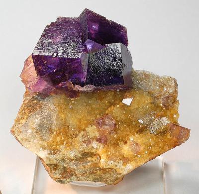A very fine 4.1 cm fluorite aggregate on nicely contrasting quartz matrix.