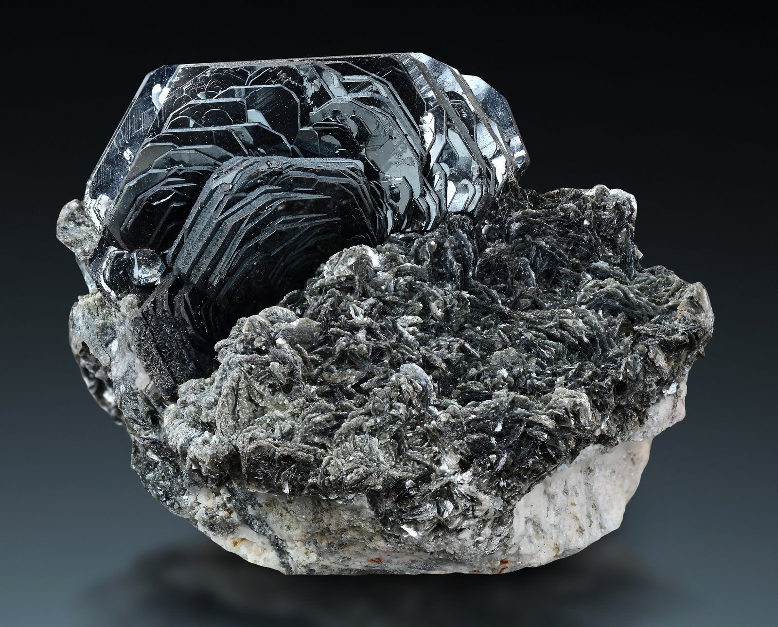 Super clear quartzes from Cavradi on schist matrix, sharp and pristine!