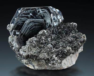 WOW!! What a masterpiece! A shockingly large and deep green titanite twin in a gorgeous cluster with sidecar crystals! This is indeed one of the best Austrian sphenes i have ever seen. A slight chlorite coating is not at all a detraction, on the contrary, it adds the typical alpine character, that makes this piece so special and outstanding.