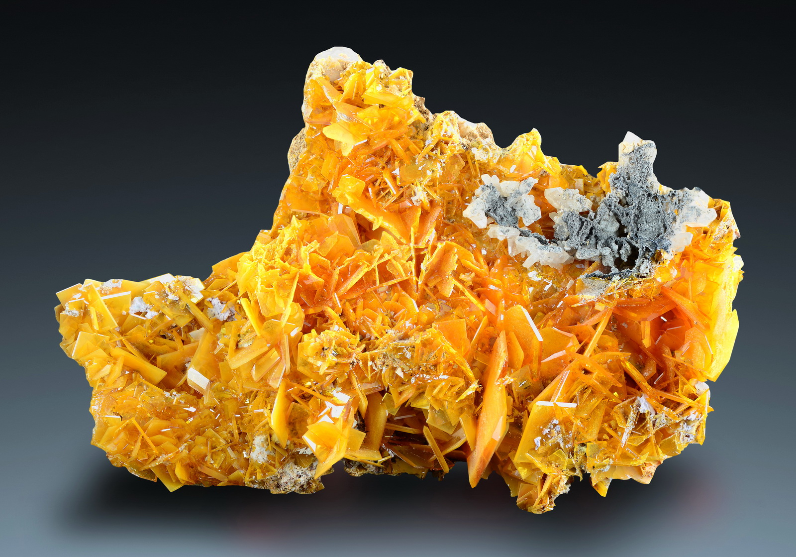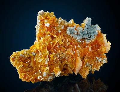 This Wulfenite from the type locality combines great colour and superb luster! A group of cerussites adds an interesting contrast.