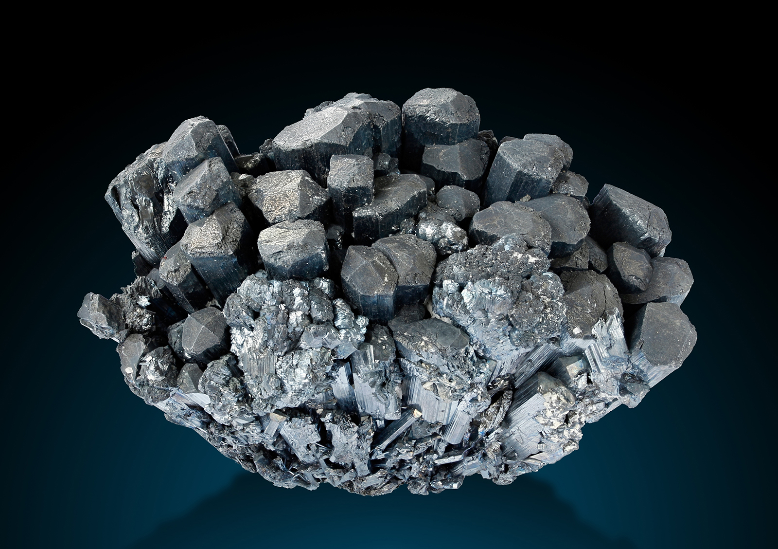 A group of highly lustrous and razor sharp terminated azurite crystals, the largest ones are raising up vertically in the center of the piece. The color is as good as it could be - an intense royal blue and most crystals are translucent. The contrast to dark red-brown matrix helps to give a great visual impact to the piece. In very fine condition damage-wise.