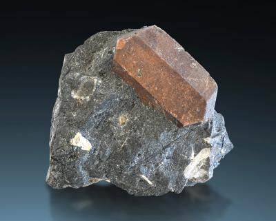 A very rare doubly terminated lorenzenite crystal nicely sitting on mother rock. The crystal measures 3.5 cm tip to tip. Ex Oliver Konczer collection.