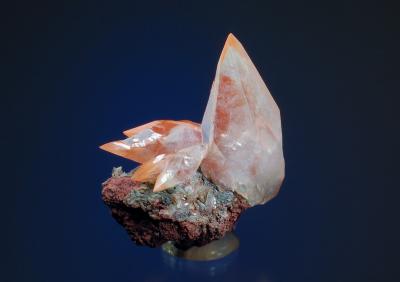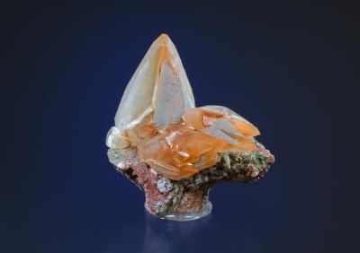 Chlorite and hematite phantoms in scalenohedral calcite crystals. Great aesthetics and pristine condition!