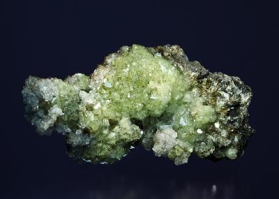Greenish adamite and white calcite crystals on a goethite matrix. Very nice arrangemant of main crystal group in the centre. No damage.