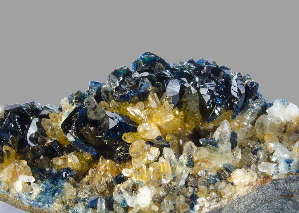 Fine crystals nicely perched on quartz matrix. Good contrast and colour! No damage on front side.