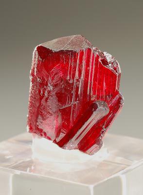 Bright RED aggregate of proustite crystals. Gorgeous colour - it just glows without any light source in the back! There is one damage on the right side of the termination, however, most of the termination faces are still intact. This piece truly sets a standard for colour, clarity and luster, it is the very best i have ever seen on any proustite specimen.