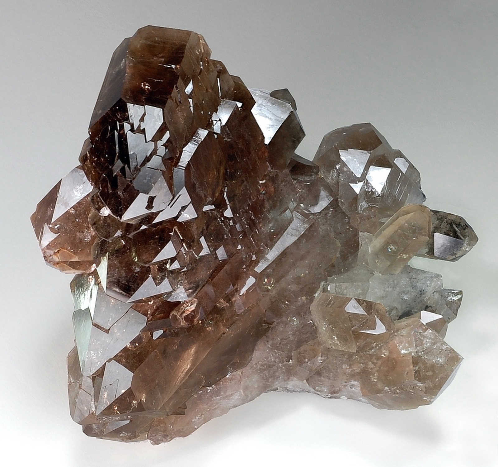 This is an outstanding gwindel specimen from a non-alpine locality. It comes from Dodo, Polar Urals and is indeed very impressive due to its size and form. It features an incredibly strong twist, and some regular smoky crystals attached on the lower front side add even more interest and beauty. Great colour and condition. What a major sample of the species!