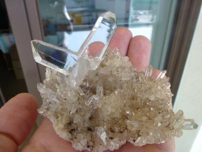 WOW! What an incredible jap-law twin on matrix! The quartz crystals have fantastic clarity and luster. the twin is 5.4 cm wide. Zero damage.