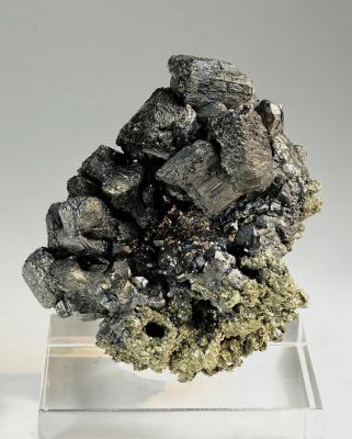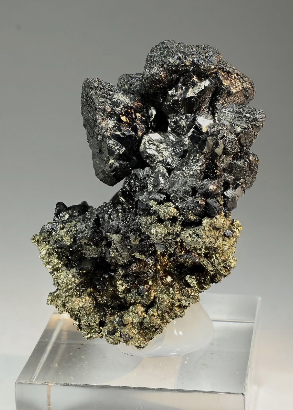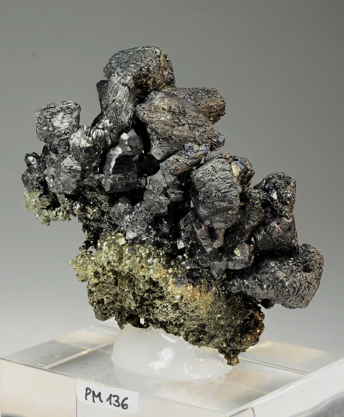 Amazing stephanite crystals on pyrite, a combination i have never seen before from Freiberg. The piece is a full floater cluster and very well crystallized on all sides. There is an old label from the famous collection of Friedrich August Frenzel (1842-1902) coming with the piece, dated to 14.4.1901