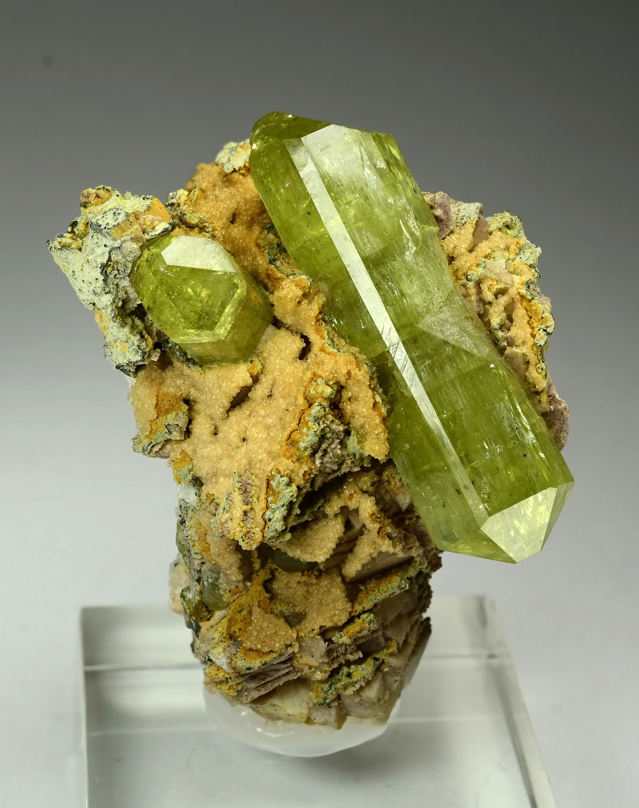 Gorgeous doubly terminated apatite on feldspar matrix! The crystal is in pristine condition and measures 5.2cm in length. Just fantastic!