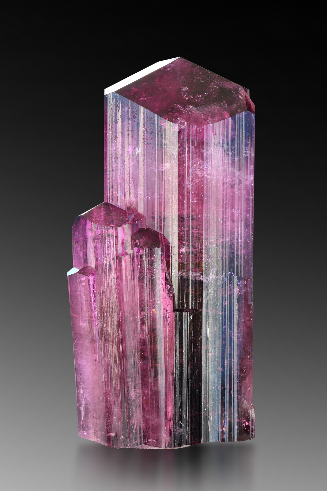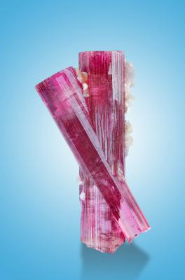 Superb rubellite from a classic Brazilian source. Striking X-shape, great colour and luster all around!