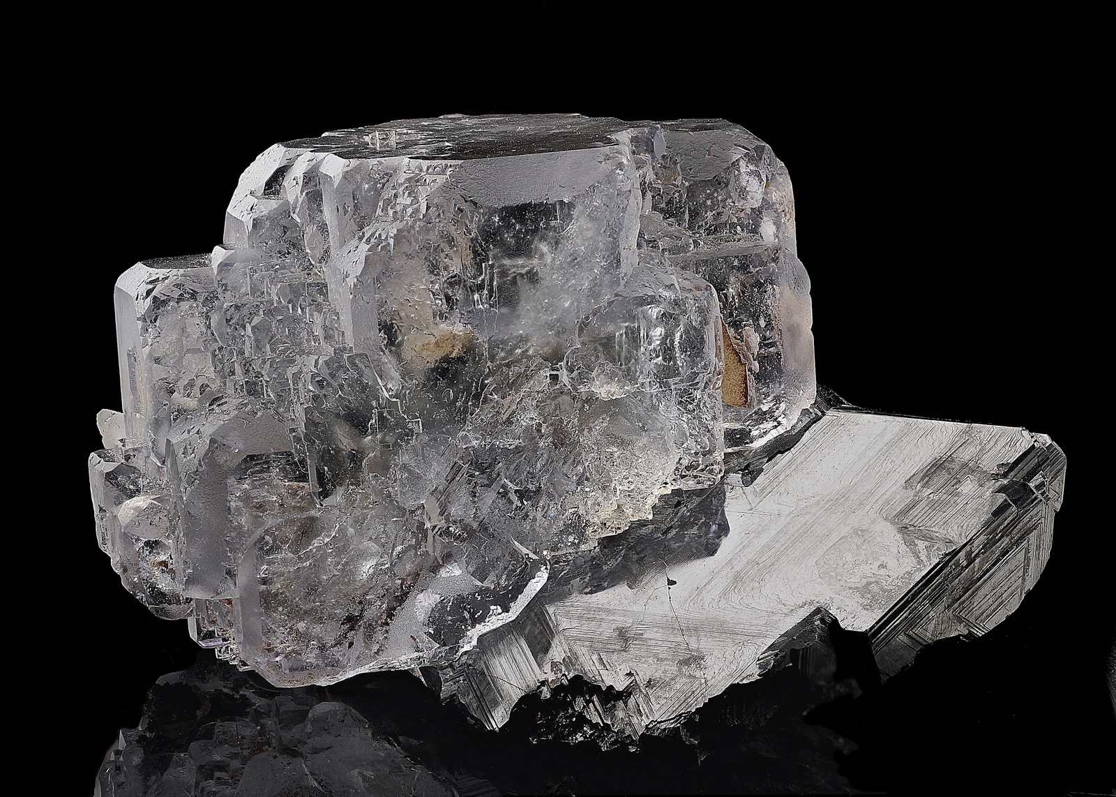 The crystal shows very fine clarity – much better in person. Only caused by these many steps you cannot see the clarity on my photo well. The crystal is not completely colorless, there is just a touch of lavender when you hold it in front of neutral background. The assemble is really exciting in person. The Sphalerite is just 8mm thick and the Fluorite is exactly in the middle – not only the middle from left to right, also from front to back. No significant damages to report, much better in person, highly recommended.