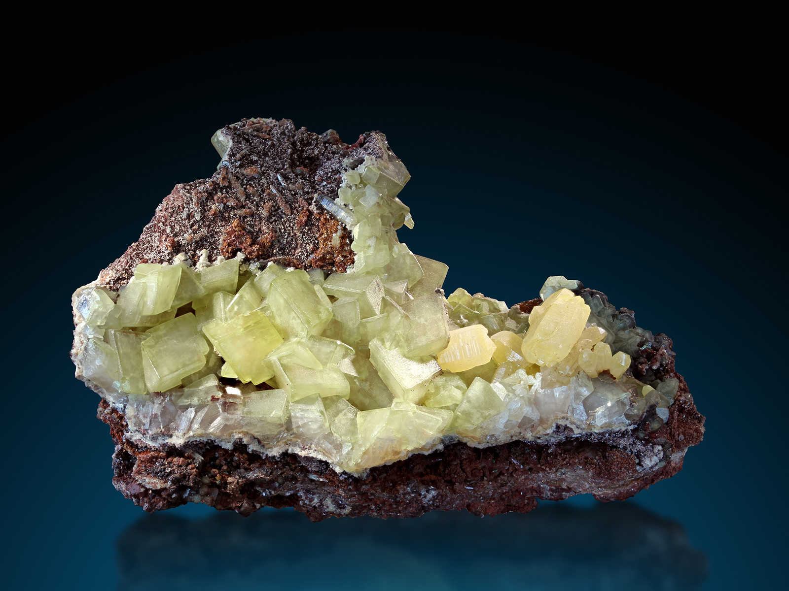 Great combination of yellow, doubly-terminated mimetites resting on green smithsonites. Classic old Tsumeb stuff, no other locality has ever produced a similar number of colours and varieties of secondary ore minerals. No damage.