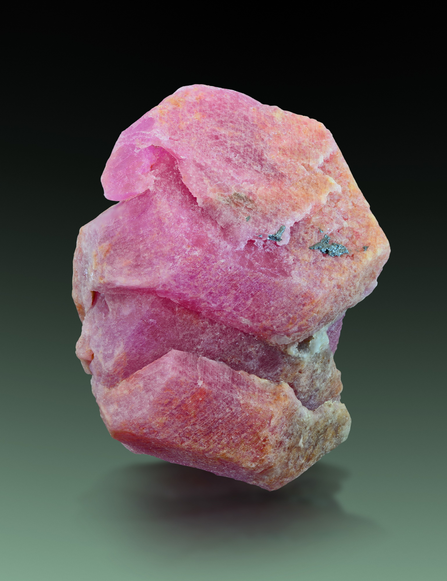 Rose pink ruby from an eastern European locality. The crystal shows stepped growth and multiple subindividuals on all sides. It is a floater and complete on all the way around.