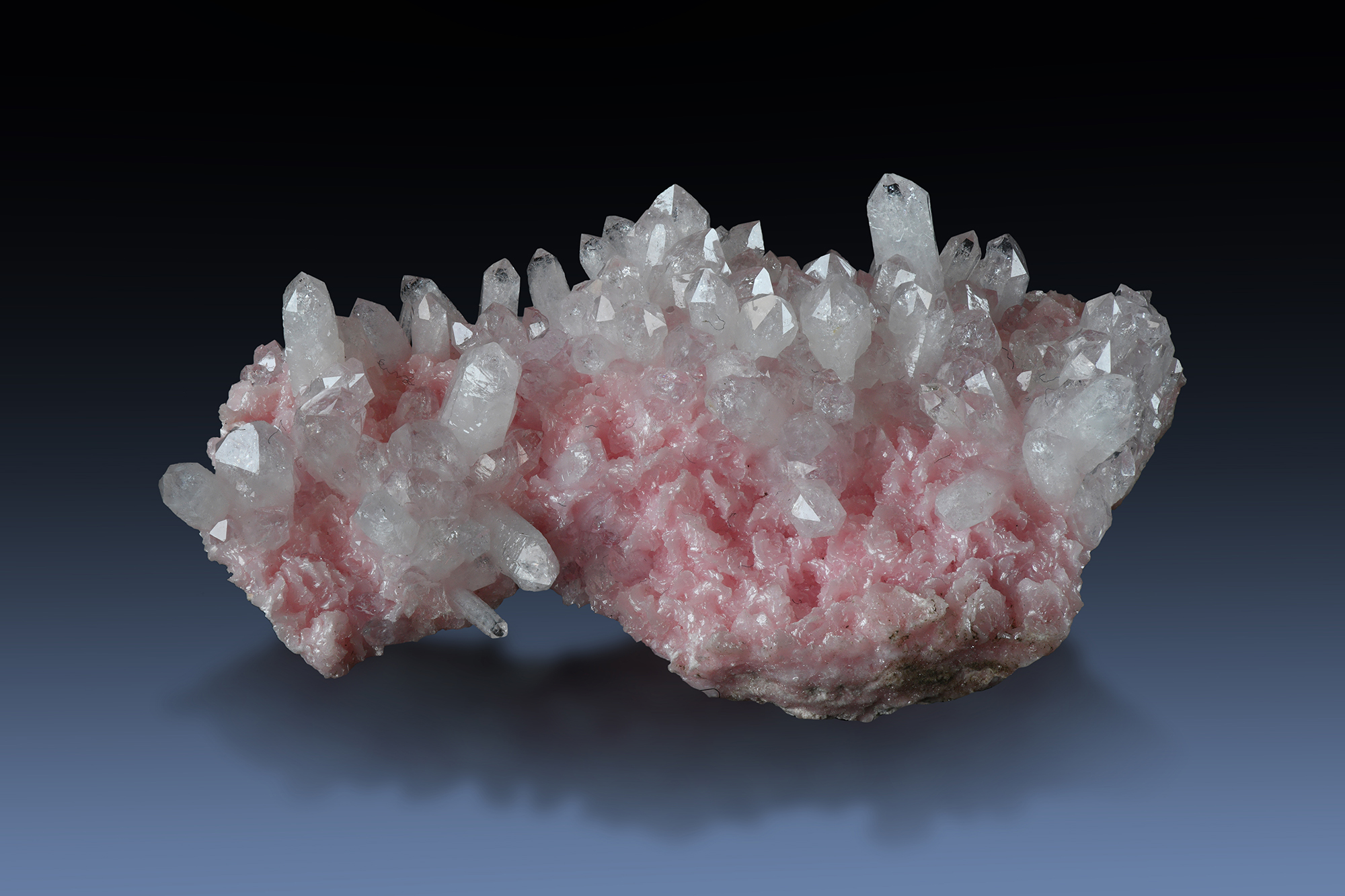A true and absolutely thought-after European classic. A cluster of bright pink rhodochrosite crystals with an overgrowth of sparkly white quartz points. This specimen is a typical example of what made Romanian minerals so attractive to the collectors and what brought up the fame of the Cavnic mine itself. Ex Alfred Haas coll.