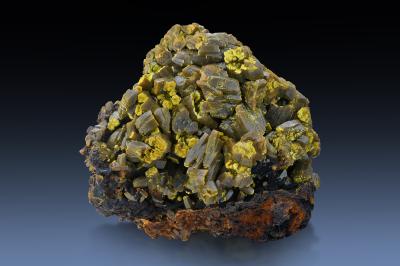 A beautiful bicolor pyromorphite featuring crystals combining of bright yellow and greenish-gray coloration, from the classic French locality of Les Farges. Ex Hilde Könighofer coll.
