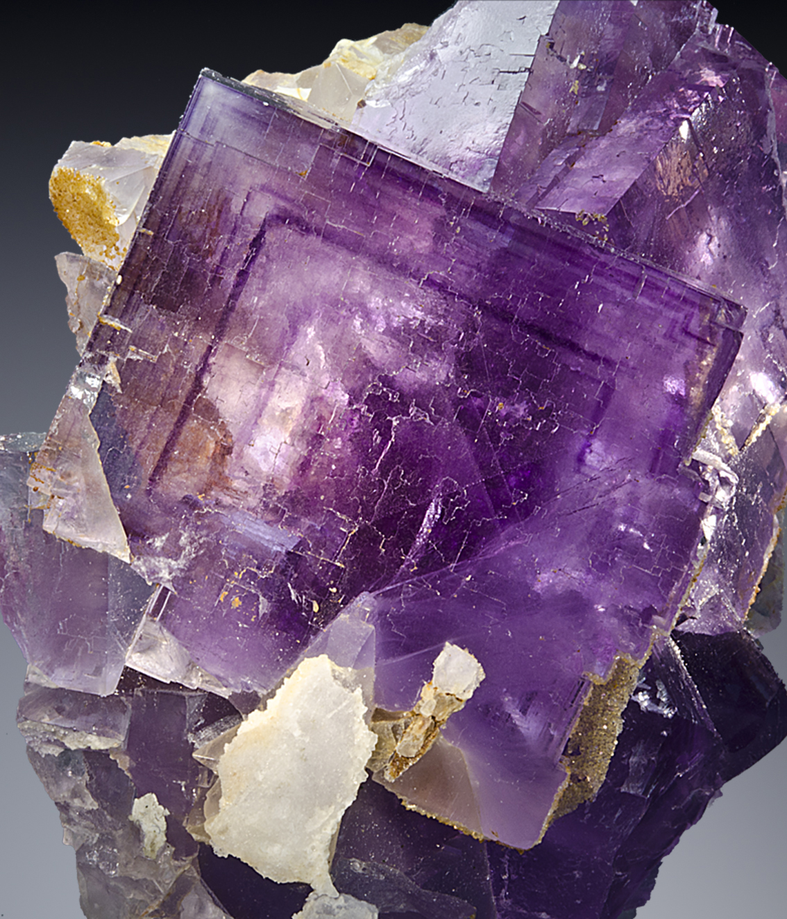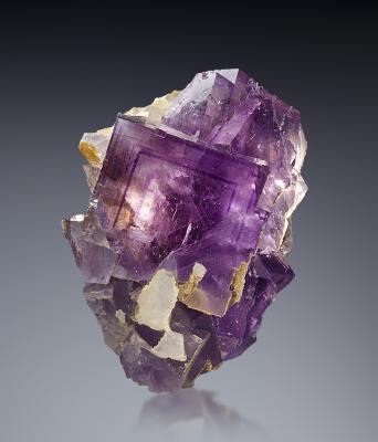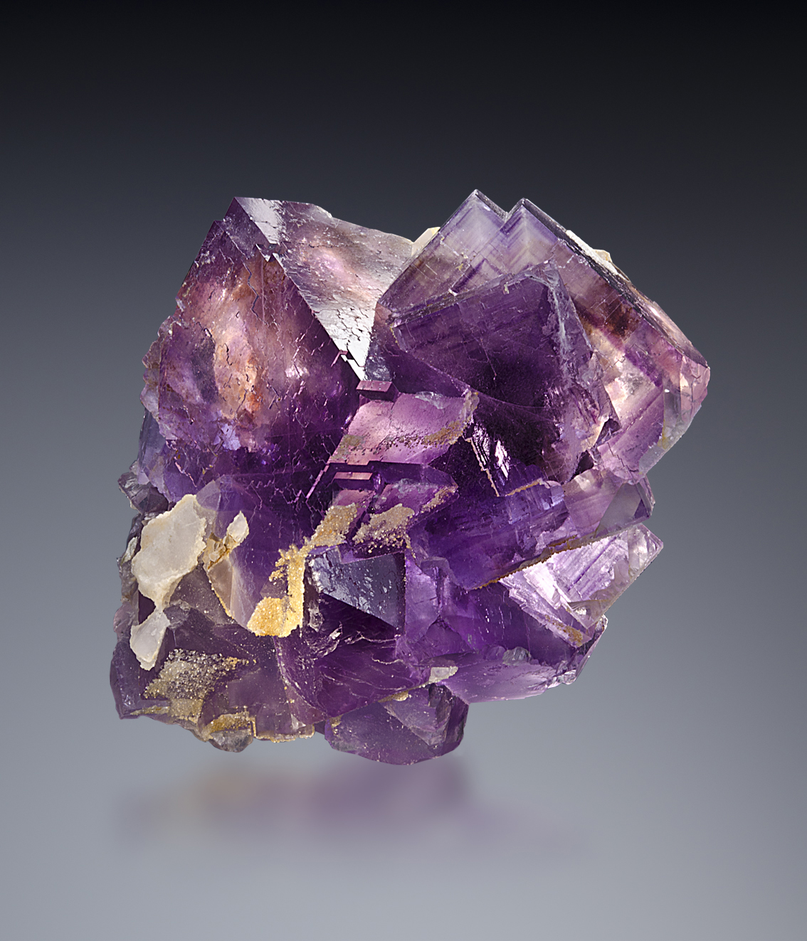 Fluorite crystals to 4.5 cm on edge in a very attractive cluster!. Note the beautiful phantoms inside! A few cleaved corners are predent, but the main crystal in the centre is in great condition.