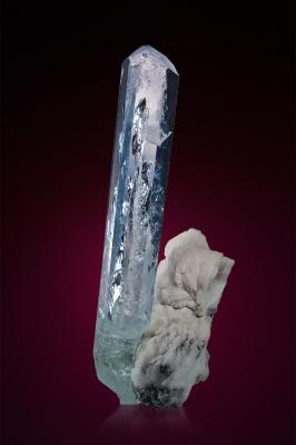 Large freestanding aquamarine crystal on white feldspar matrix. Note the very beautiful bevelled termination faces! Ex Steve Smale collection.